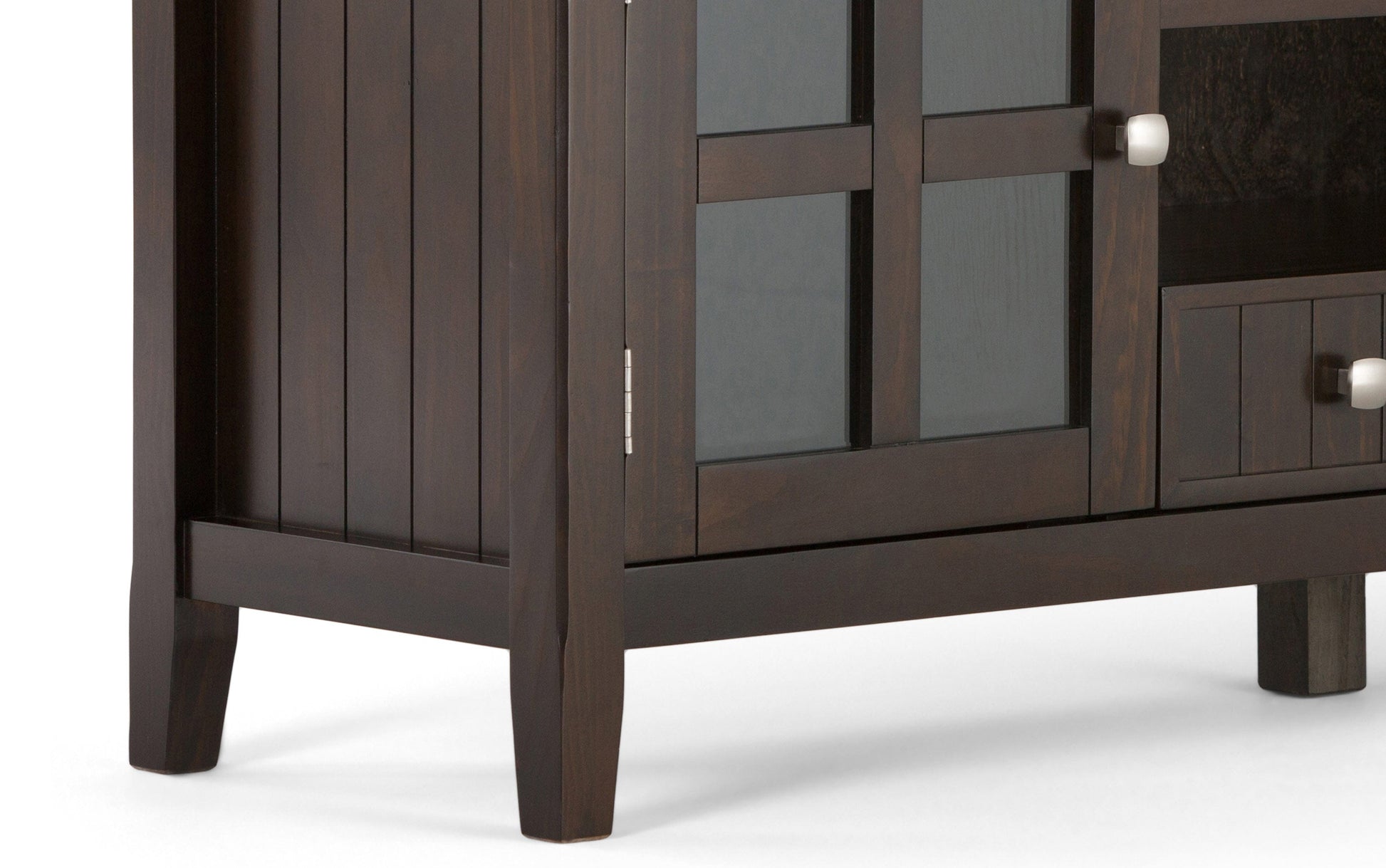 Having just purchased your dream large flat screen TV - you need the perfect TV Stand to enhance your viewing pleasure. Look no further. The Acadian TV Stand is perfectly sized for TV's up to 66 inches. The Acadian TV Stand has plenty of storage and space for all your media and gaming devices. It has a large centrally located open area with one adjustable shelf and two drawers. The two large side storage cabinets open to adjustable shelves. The unit features cord management cut-outs for easy installation of TV and media components.